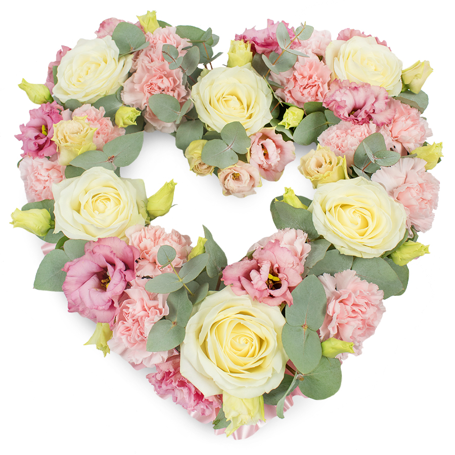 Show your deep respect with our Heartfelt Remembrance Bouquet. Designed to be a luxurious tribute, this arrangement features white roses, soft pink carnations, delicate pink lisianthus, and refreshing eucalyptus leaves. The unique interplay of color and texture creates an eye-catching display that honors cherished memories and celebrates a life well-lived.